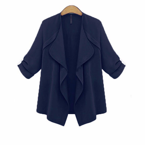Women Autumn Spring Solid Long Sleeve Loose Plus Coat Cardigan